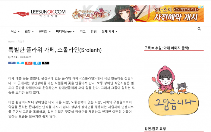 특별한 플라워 카페, 스롤라인(Srolanh) - 이선옥닷컴